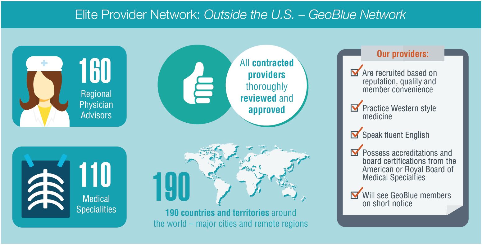 The GeoBlue physician network connects members with the most selective group of internationally friendly medical experts.